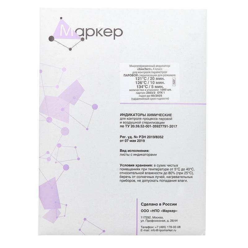 ХимТест, 4 класс для контроля параметров паровой стерилизации 121 °С /20 мин, 126 °С /10 мин, 134 °С /5 мин, 500 тестов