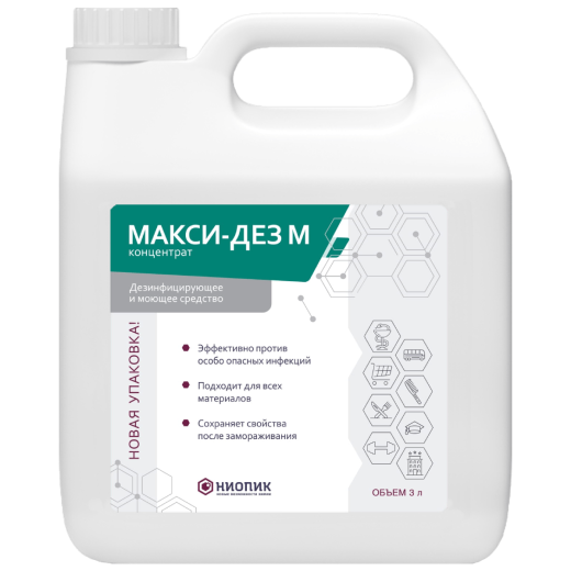 Макси-Дез М - дезинфицирующее средство с моющим эффектом. Имеет широкую сферу применения.